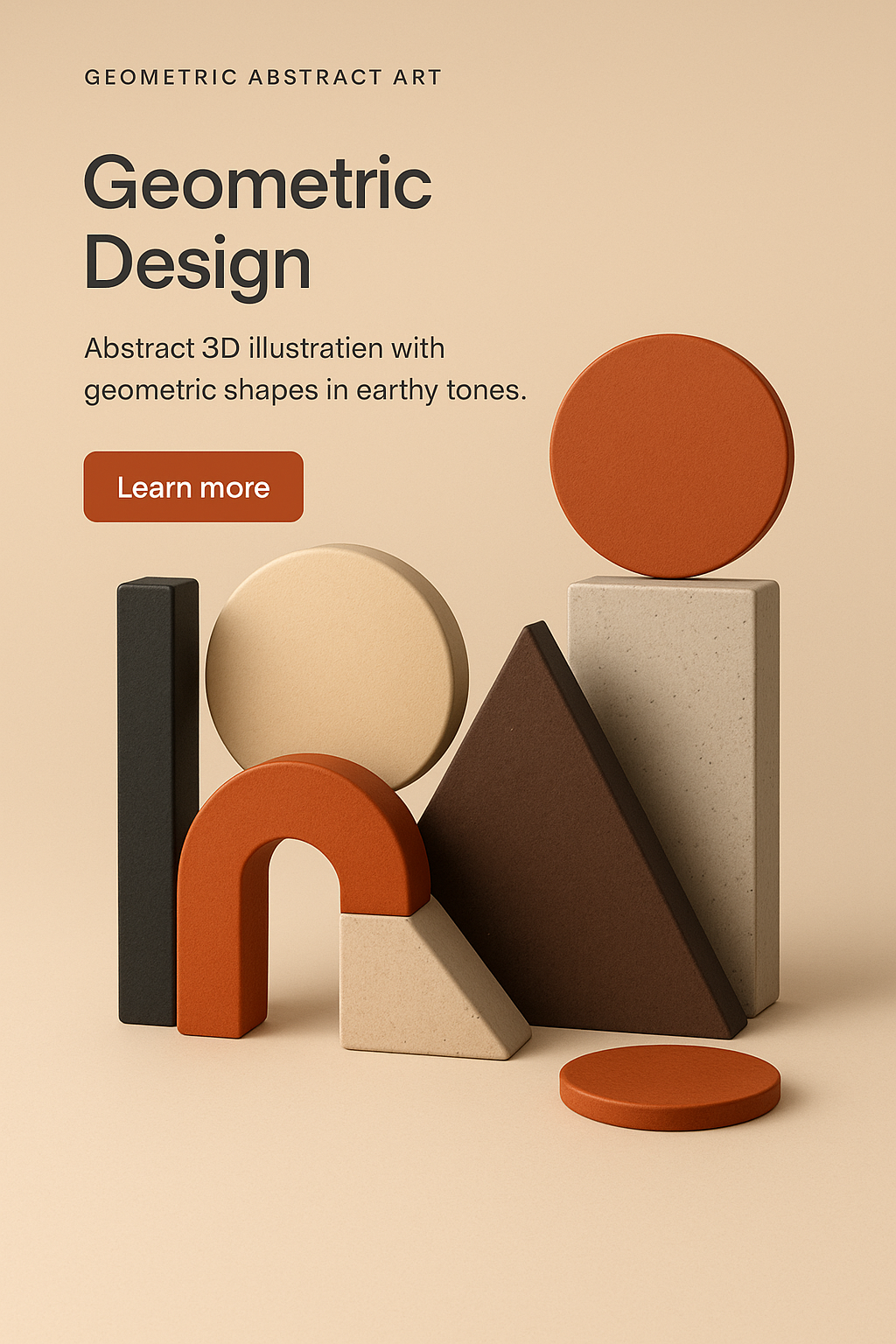Geometric Abstract Art in Earthy Tones - 3D Visual Composition