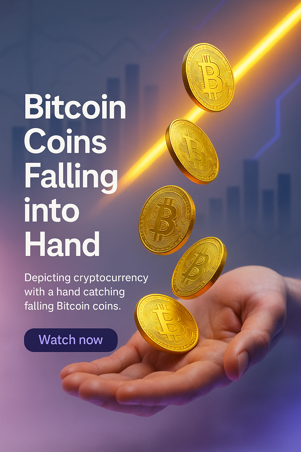 A visually striking graphic illustrating Bitcoin coins falling into a hand, symbolizing cryptocurrency investment. Ideal for digital finance content.