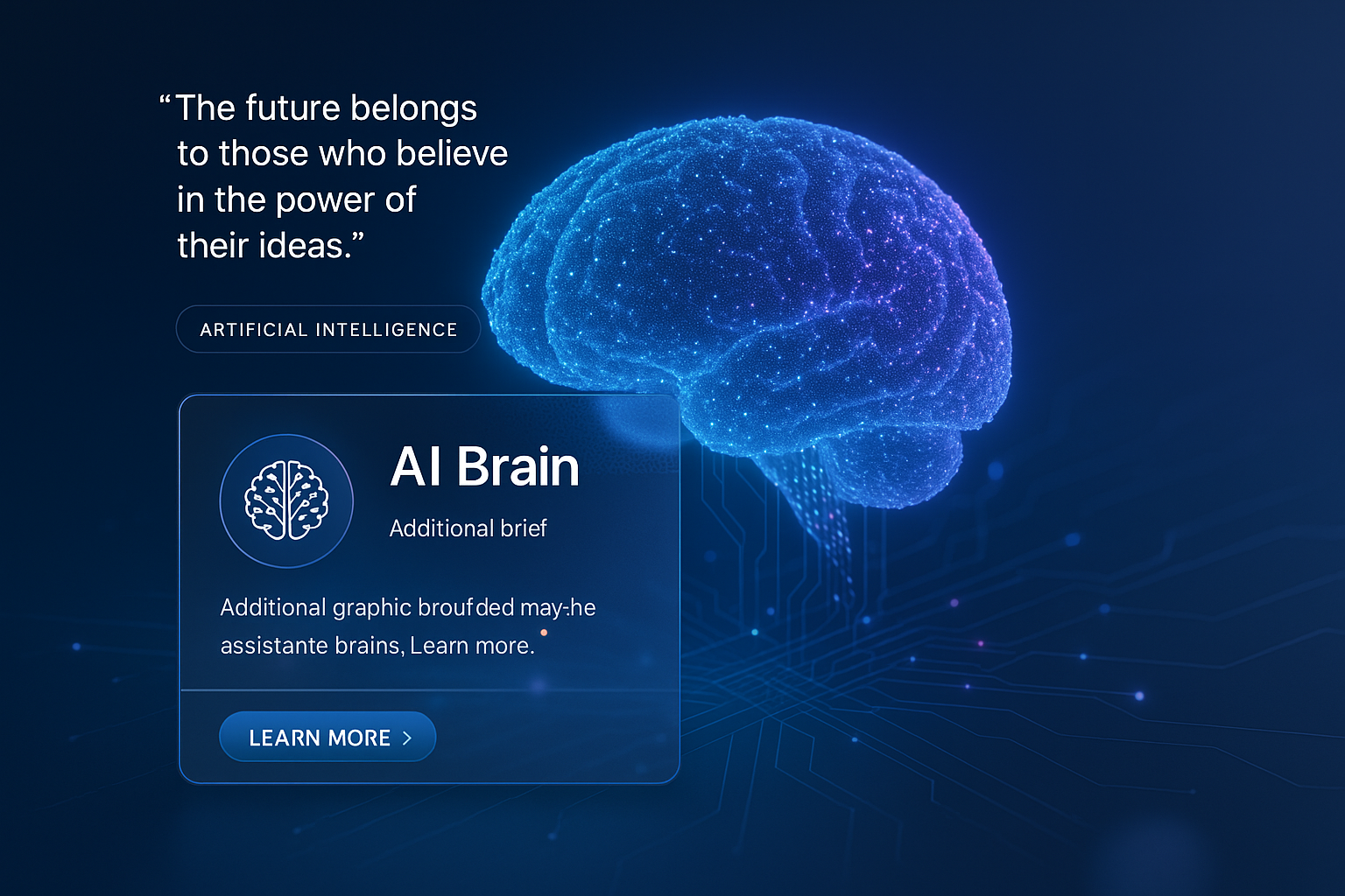 /Collection: /by davooda/Type: PNG/A visually striking illustration featuring a digital brain, symbolizing artificial intelligence. The design includes a quote, action button, and a modern layout with a gradient background.