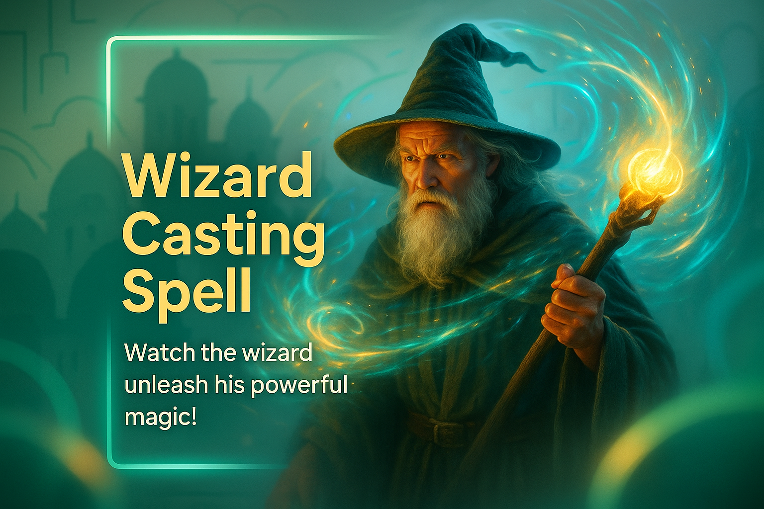 Fantasy Illustration of a Wizard Casting a Spell with Magical Effects