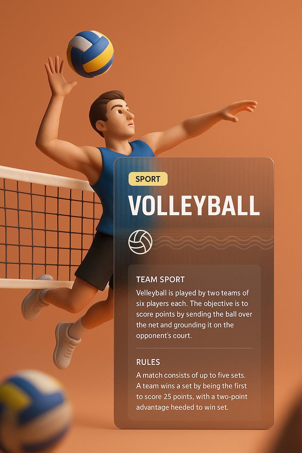 Dynamic 3D Volleyball Illustration with Informative Overlay