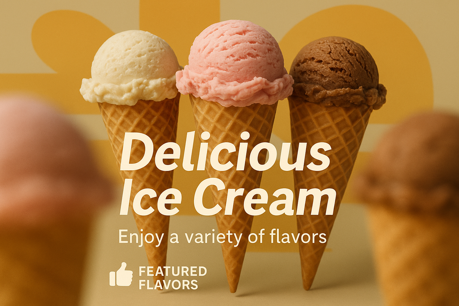 /Collection: /by davooda/Type: PNG/A visually appealing image featuring ice cream cones in various flavors, designed for a promotional or marketing context. Ideal for dessert shops and food-related advertising.