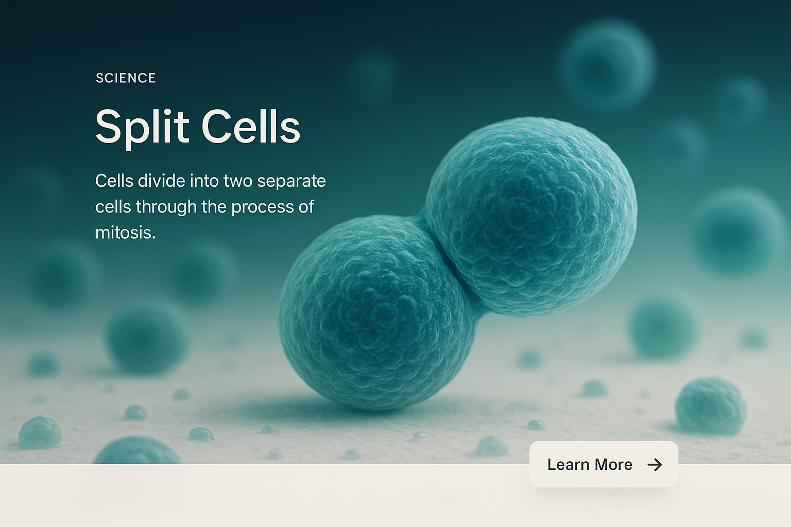 /Collection: /by davooda/Type: PNG/A visually captivating illustration depicting the process of cell division, featuring two cells in close proximity. The background gradient transitions from dark to light, enhancing the realism.