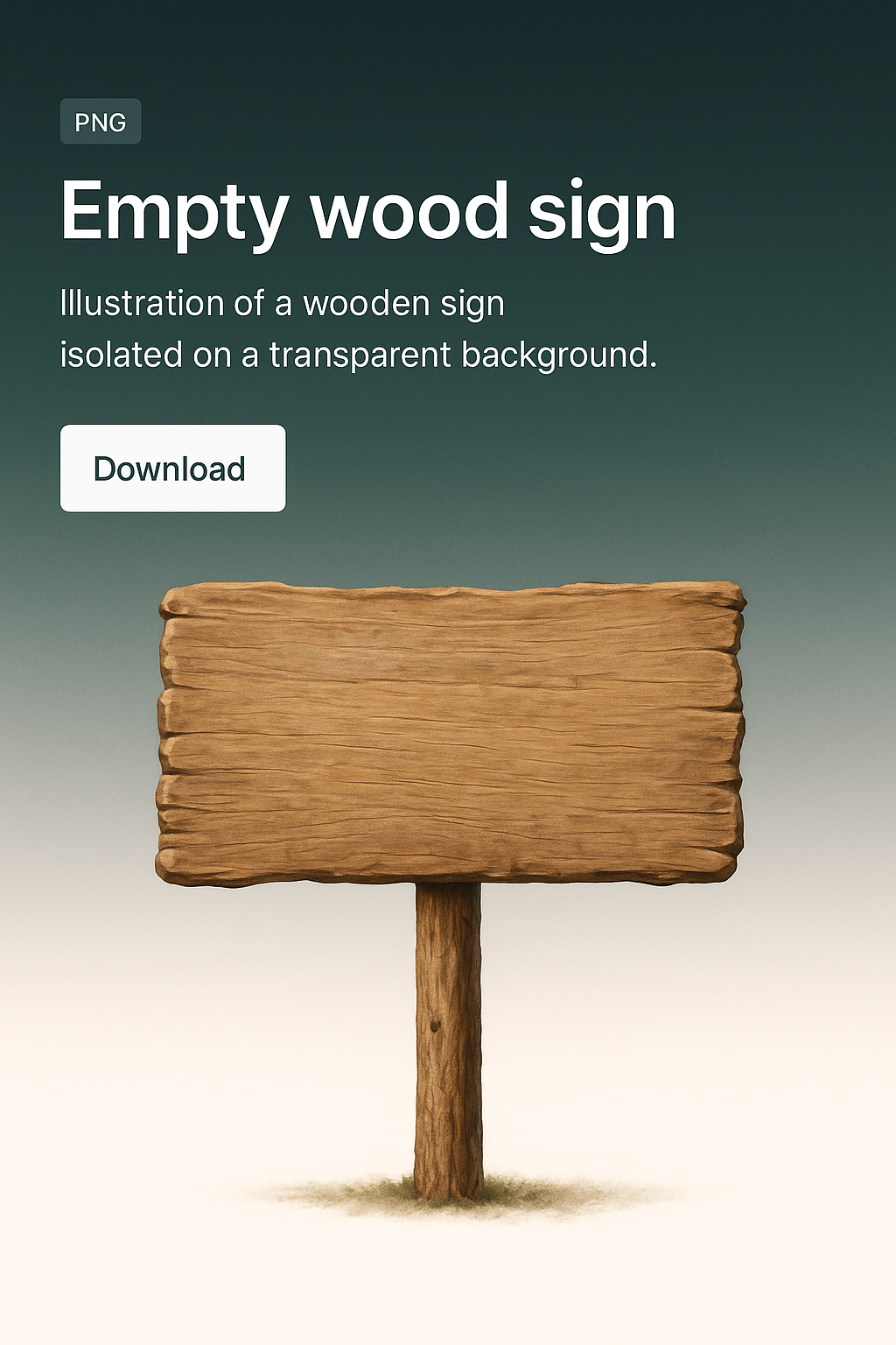 A realistic illustration of an empty wooden sign on a gradient background. Ideal for web design with a download button for user interaction.