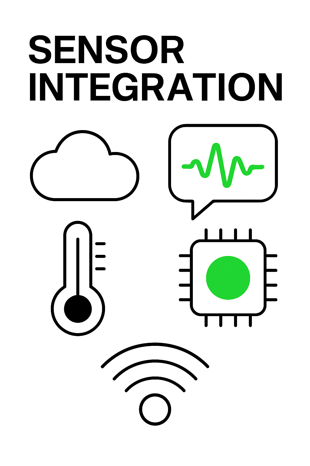 Minimalist infographic depicting sensor integration concepts with clear icons and modern typography, suitable for technology presentations.