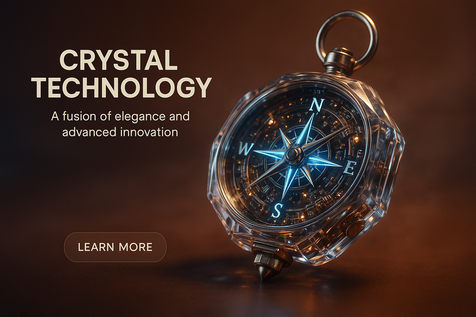/Collection: /by davooda/Type: PNG/A stunning close-up of a hyperrealistic compass, crafted from clear polymers, showcasing intricate inner technology with glowing LEDs and mechanical details, set against a gradient background.