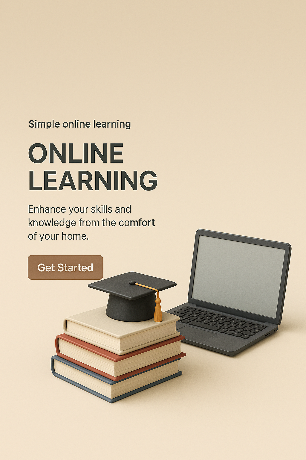 /Collection: /by davooda/Type: PNG/A realistic 3D render showcasing a simple online learning environment featuring stacked books, a laptop, and a graduation cap. The design emphasizes a clean, minimalistic aesthetic with ample space for text.