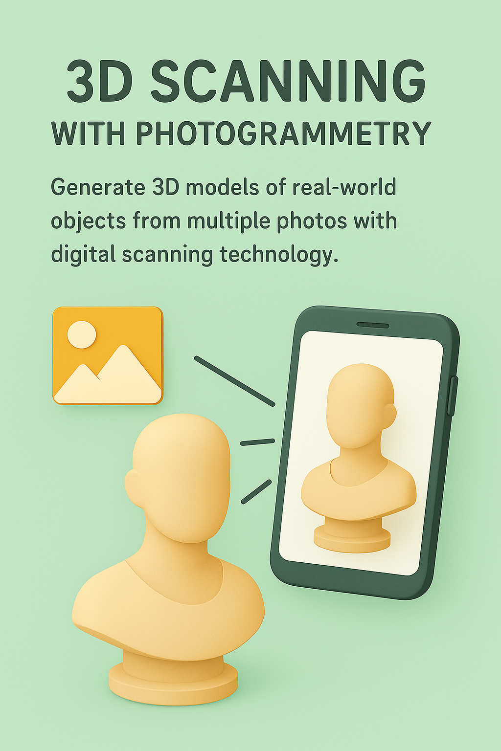 An engaging illustration depicting 3D scanning technology featuring a smartphone and a bust model. Ideal for educational or tech-related content.