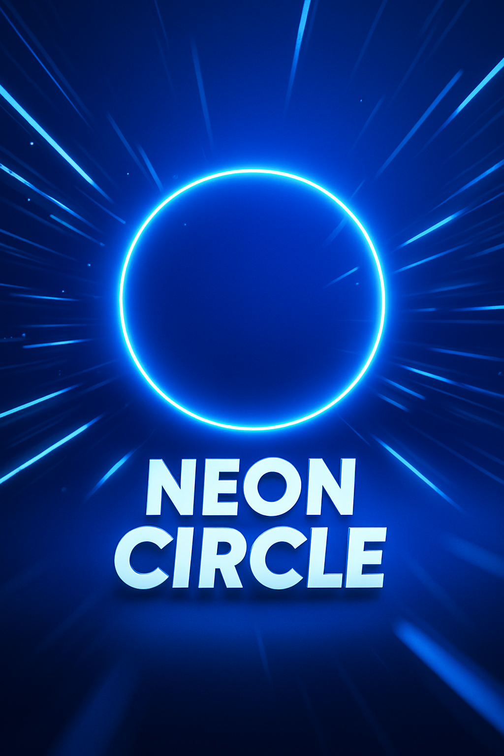 /Collection: /by davooda/Type: PNG/A vibrant blue neon circle stands out against a smooth gradient background, with dynamic lines radiating outward, creating a sense of motion and depth. The title 'NEON CIRCLE' is prominently displayed in a bold font.