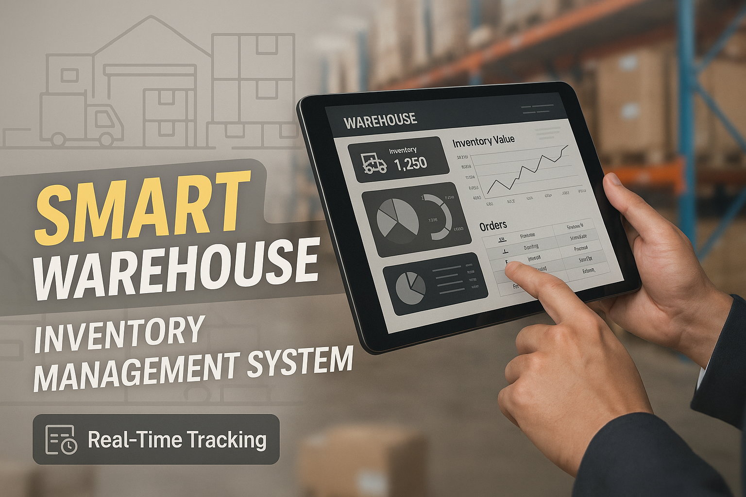 /Collection: /by davooda/Type: PNG/A modern digital interface showcasing an inventory management system on a tablet, emphasizing real-time tracking in a warehouse setting. Ideal for tech and logistics presentations.