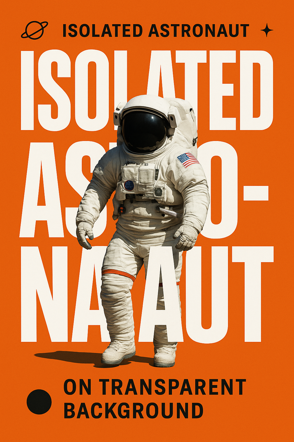 A striking graphic featuring an astronaut in a spacesuit against a bold orange background, ideal for space-themed projects or promotional materials.