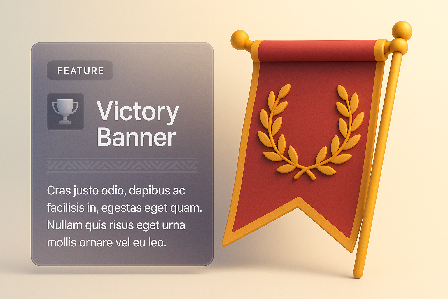 /Collection: /by davooda/Type: PNG/A vibrant 3D rendering of a victory banner featuring a laurel wreath, complemented by a sleek information block. The design incorporates smooth gradients and harmonious colors for an appealing look.
