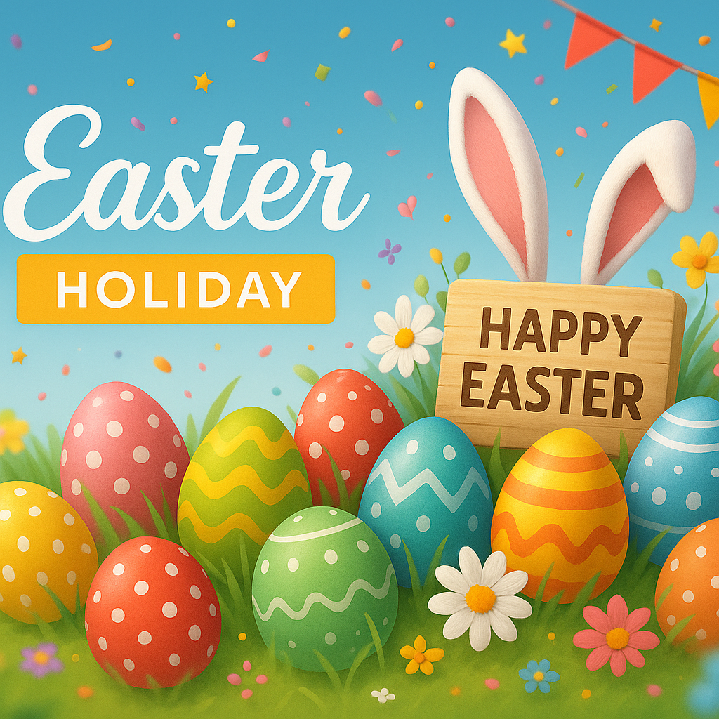 Easter Celebration Promotional Graphic Featuring Colorful Eggs
