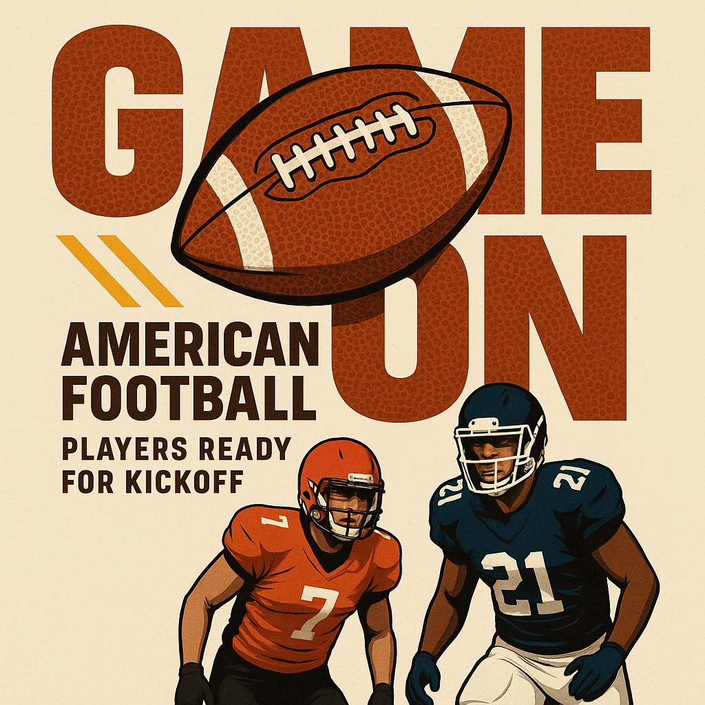 Dynamic Sports Graphic Featuring American Football Players Ready for Action