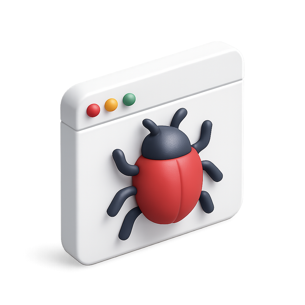 /Collection: /by davooda/Type: PNG/A stylized 3D bug icon displayed within a computer window, featuring a simplistic design with a transparent background and vibrant colors. The icon showcases a three-quarter view, emphasizing a volumetric appearance.