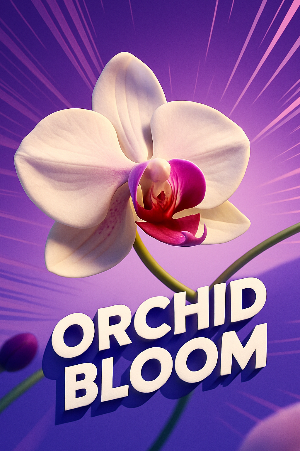 /Collection: /by davooda/Type: PNG/A stunning 3D illustration of an orchid bloom featuring dynamic lines radiating from the center against a smooth gradient background. The title 'ORCHID BLOOM' is boldly displayed.