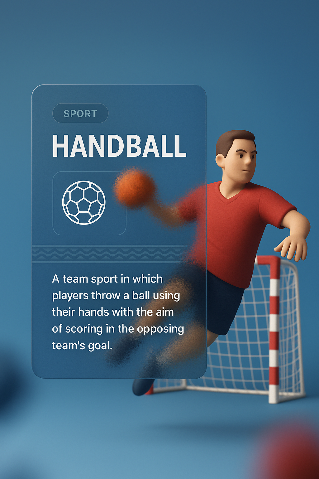 A vibrant 3D illustration of a handball player in action, with a transparent overlay featuring sport details and an engaging design that enhances readability.