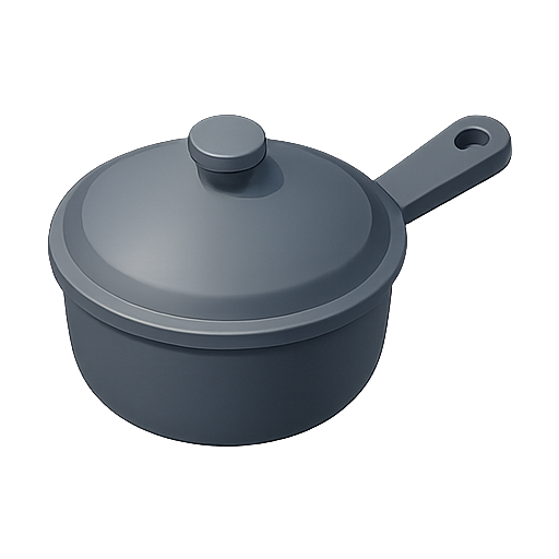 Stylized 3D rendering of a modern cooking pot with a lid, featuring a sleek design and smooth surface. Ideal for culinary-related graphics and kitchenware presentations.