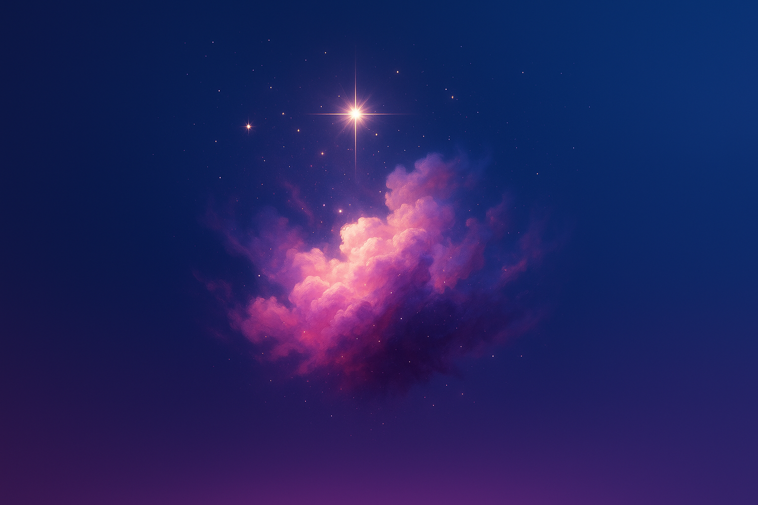 /Collection: /by davooda/Type: PNG/An ethereal composition featuring layered clouds in shades of pink and purple against a smooth gradient background. The scene is illuminated with contrasting lighting, creating a captivating starlit atmosphere.
