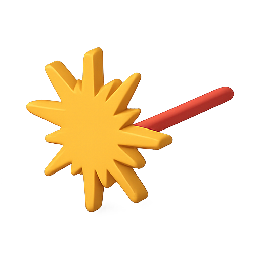 A vibrant 3D illustration of a starburst shape in yellow with a red handle, ideal for use in graphic design, branding, or playful marketing materials.
