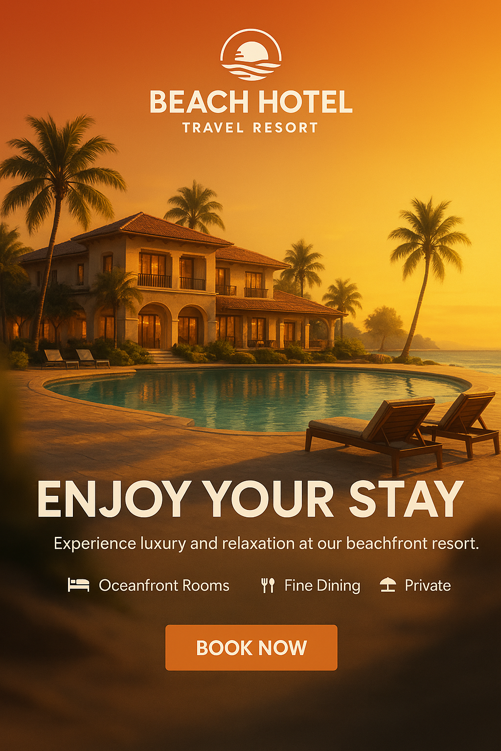 Luxury Beach Hotel Promotional Graphic with Modern Design Elements