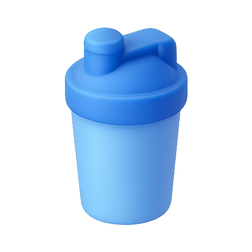 A modern, minimalist blue shaker bottle designed for fitness enthusiasts, featuring a secure lid and sleek profile. Ideal for health and wellness branding.