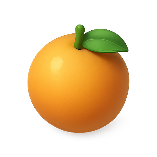 Stylized 3D Orange Icon with Leaf Detail