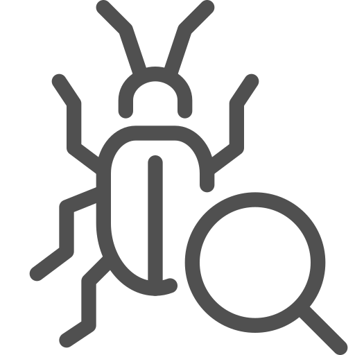 outline simple icon: bug, defect, magnifying glass, quality assurance, search