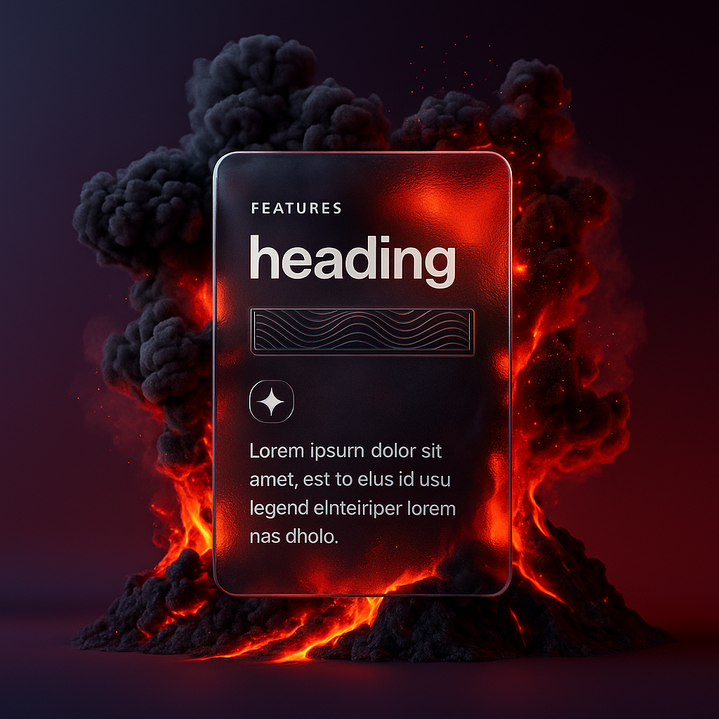 /Collection: /by davooda/Type: PNG/A dramatic image showcasing a volcanic eruption with vibrant red lava and dark smoke. A transparent feature block with text overlays enhances the overall design.