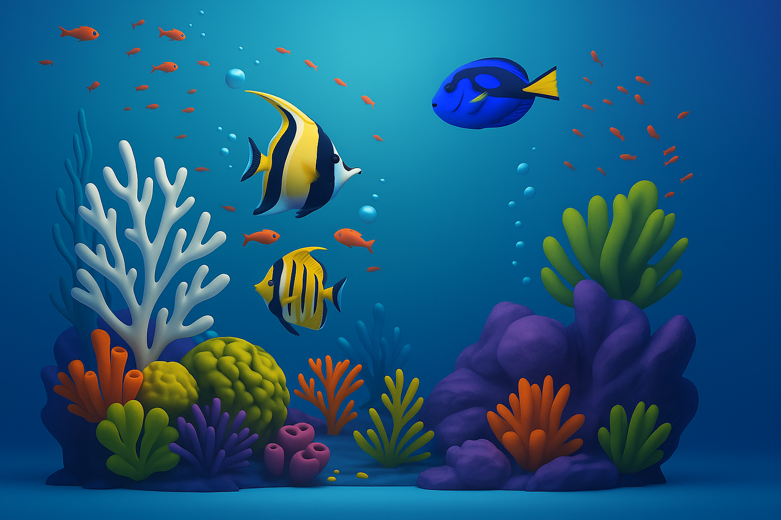 Vibrant 3D Coral Reef Illustration with Marine Life