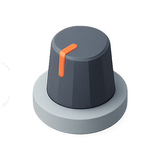 A modern 3D rendering of a volume control knob featuring a sleek design with a contrasting accent color, suitable for user interface design or product mockups.