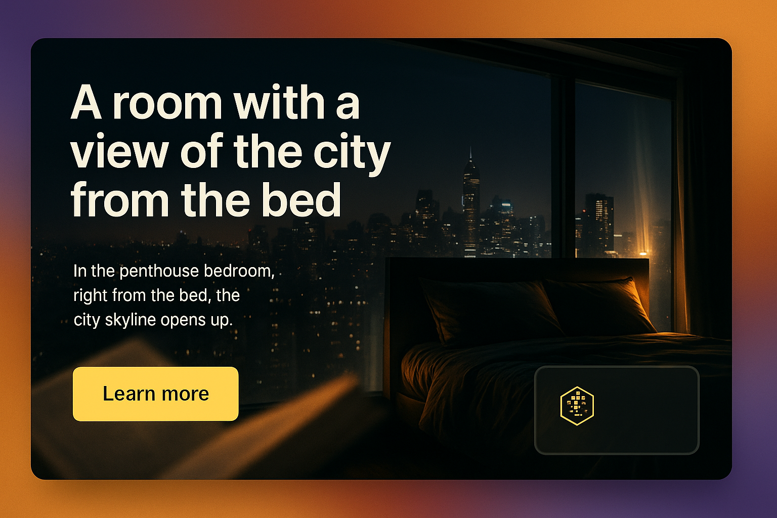 Urban Penthouse Bedroom with City View at Night