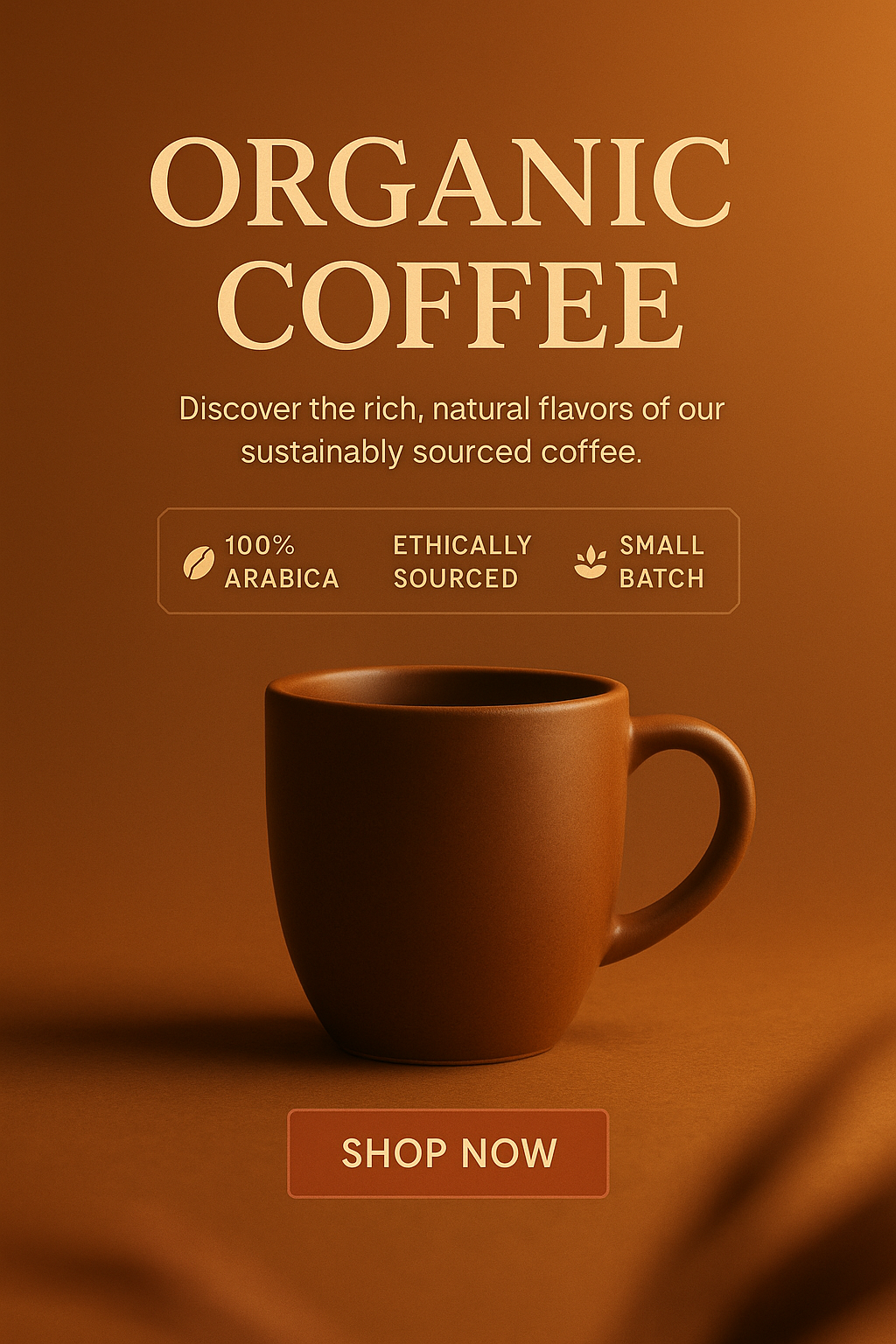 Elegant Coffee Promotion with Organic and Fair Trade Focus