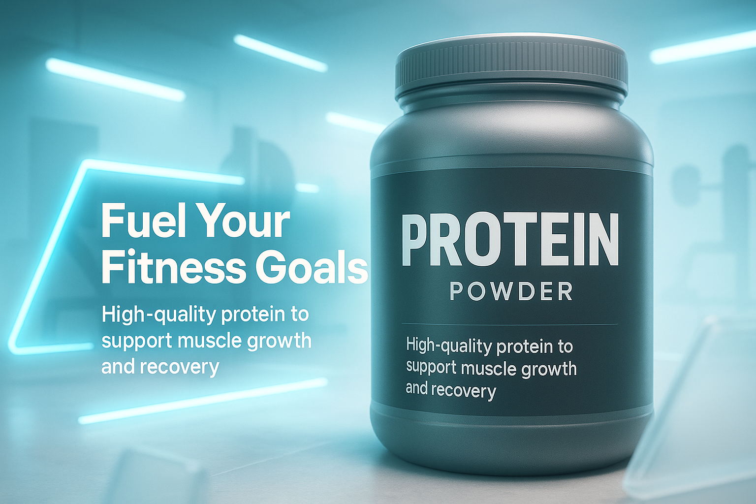 Fitness Product Promotional Image Featuring Protein Powder