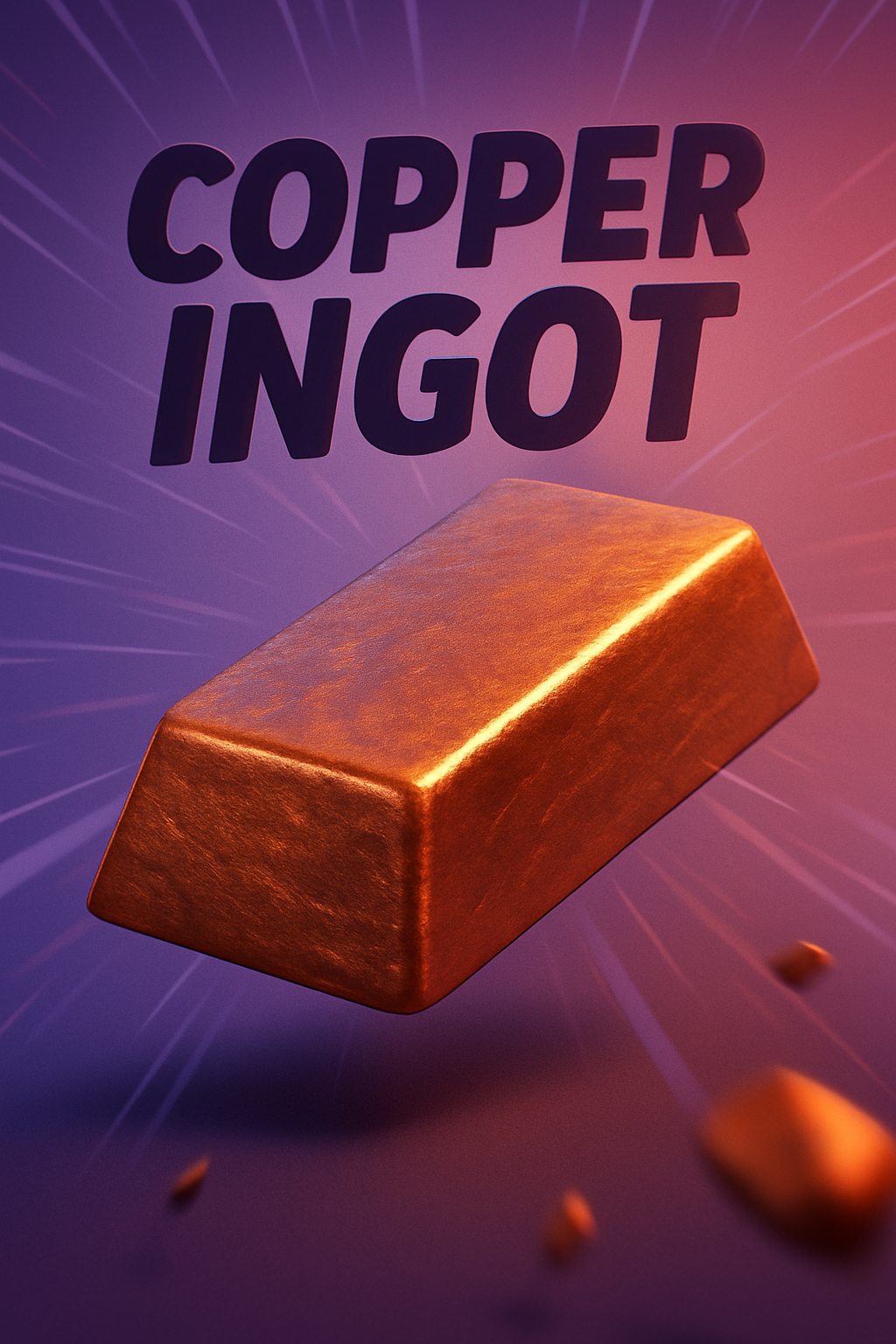 Dynamic Copper Ingot with Bold Text and Vibrant Background