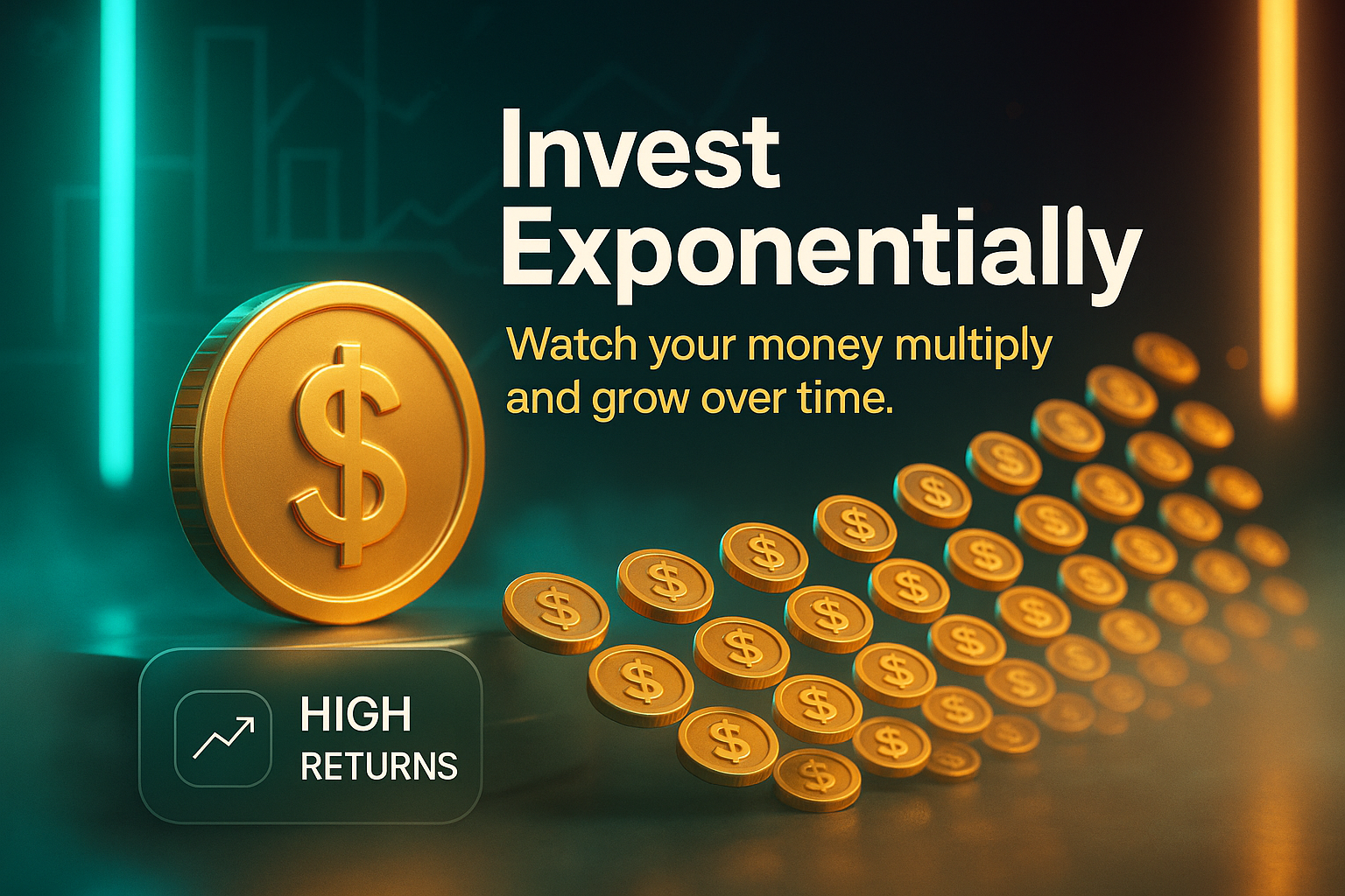 Modern promotional graphic showcasing investment concepts with a focus on exponential growth. Ideal for financial services marketing and educational content.