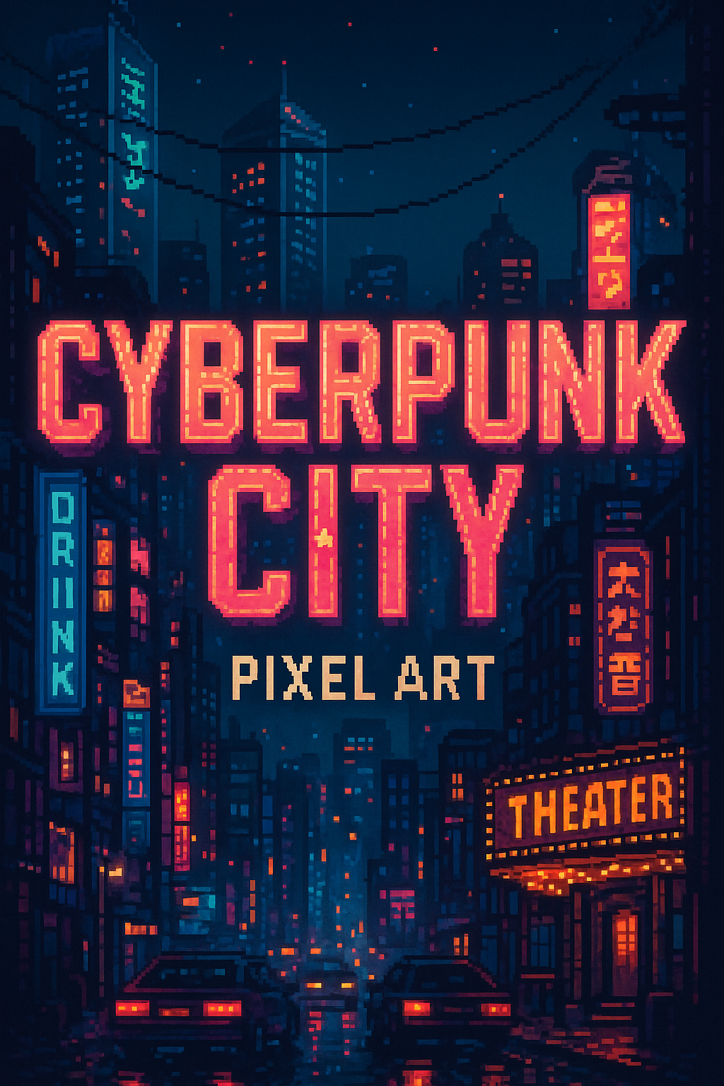 Vibrant Pixel Art Cityscape in Cyberpunk Style