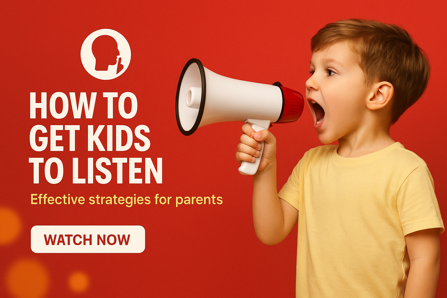 Vibrant social media post designed to promote effective parenting strategies, featuring a child with a megaphone against a bold background, perfect for parenting blogs.