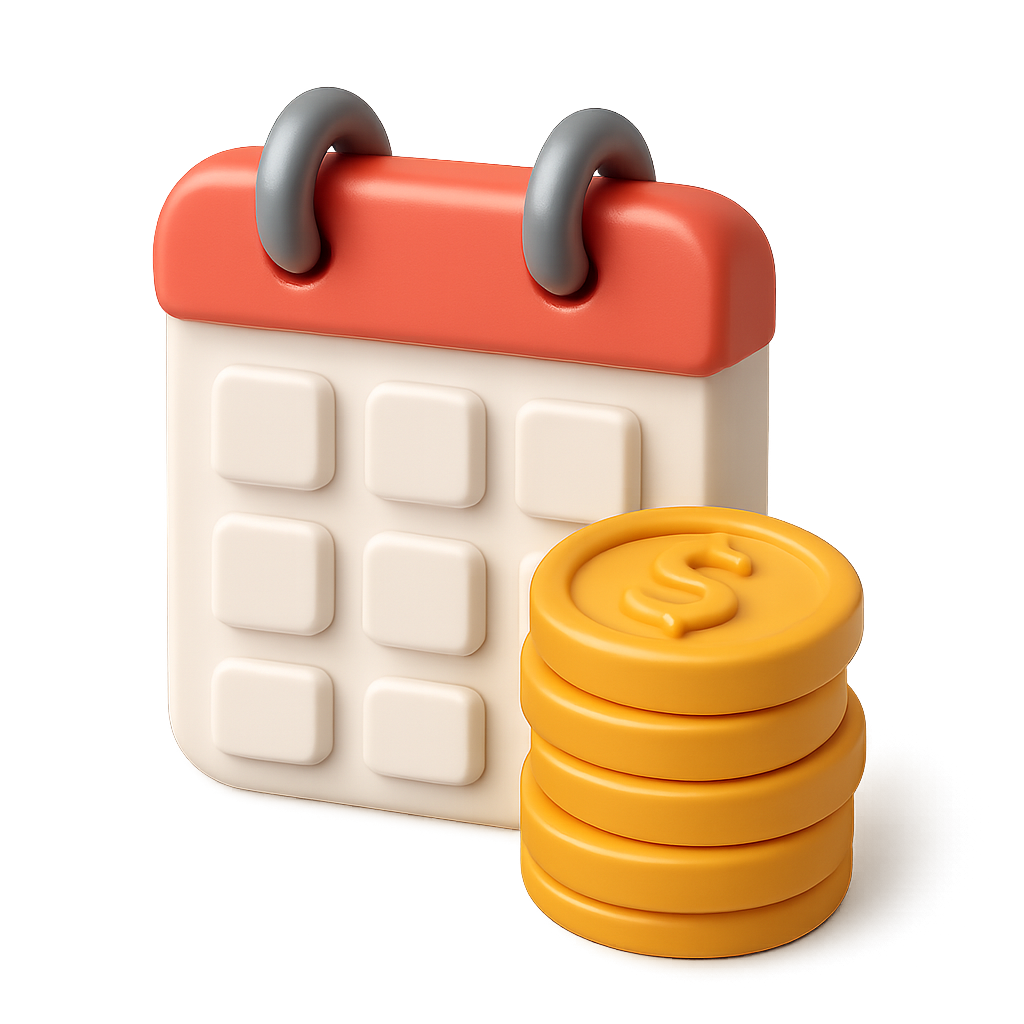 3D Icon of Calendar with Coins in Isometric View