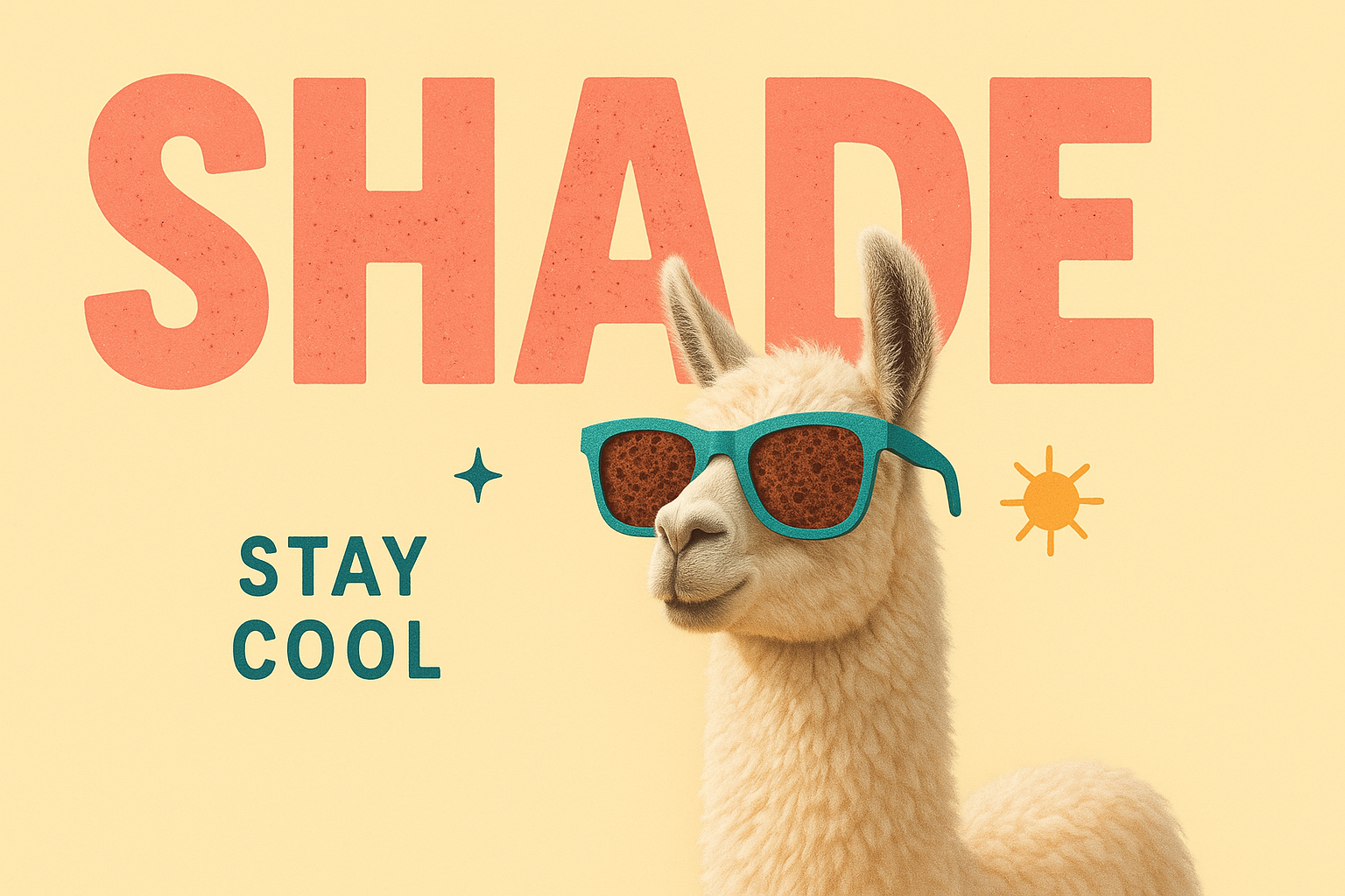 Vibrant and whimsical graphic featuring a llama wearing sunglasses, perfect for summer-themed promotions or social media posts targeting a young audience.