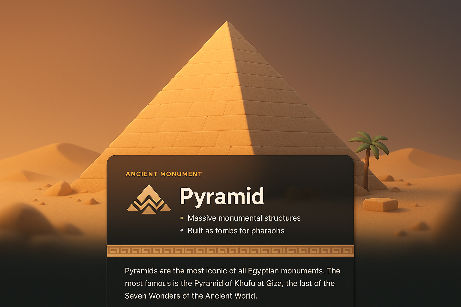 A visually striking 3D illustration of a pyramid set against a gradient background. The design features informational blocks integrated seamlessly into the image, highlighting the pyramid's significance.