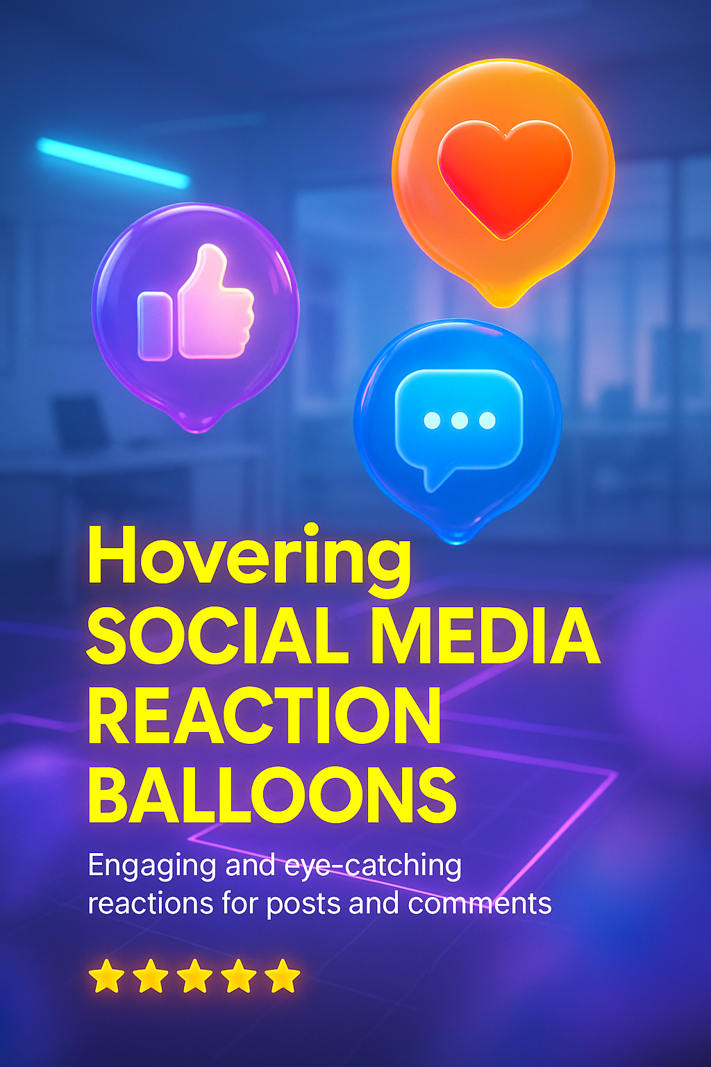 /Collection: /by davooda/Type: PNG/Vibrant graphic showcasing social media reaction balloons designed to enhance engagement on posts and comments. Ideal for digital marketing and social media platforms.