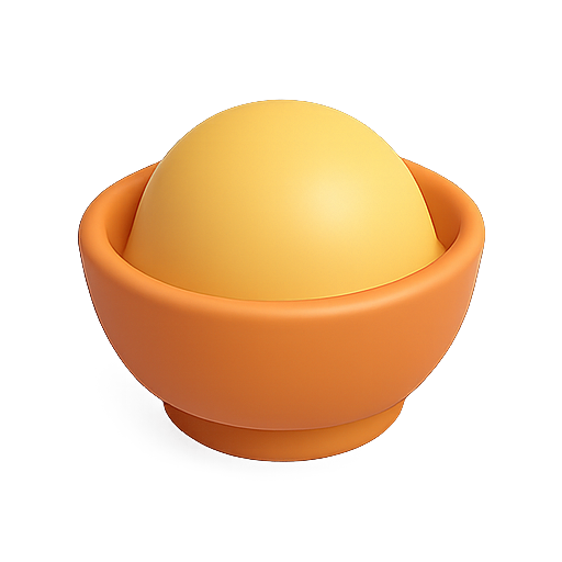 A stylized 3D rendering of a yellow sphere nestled in an orange bowl, showcasing a modern and minimalist design suitable for product mockups or digital illustrations.