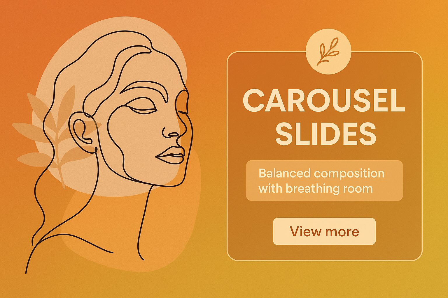 This is a promotional graphic for carousel slides featuring a minimalist line art portrait and a soft gradient background. Ideal for social media or digital presentations.