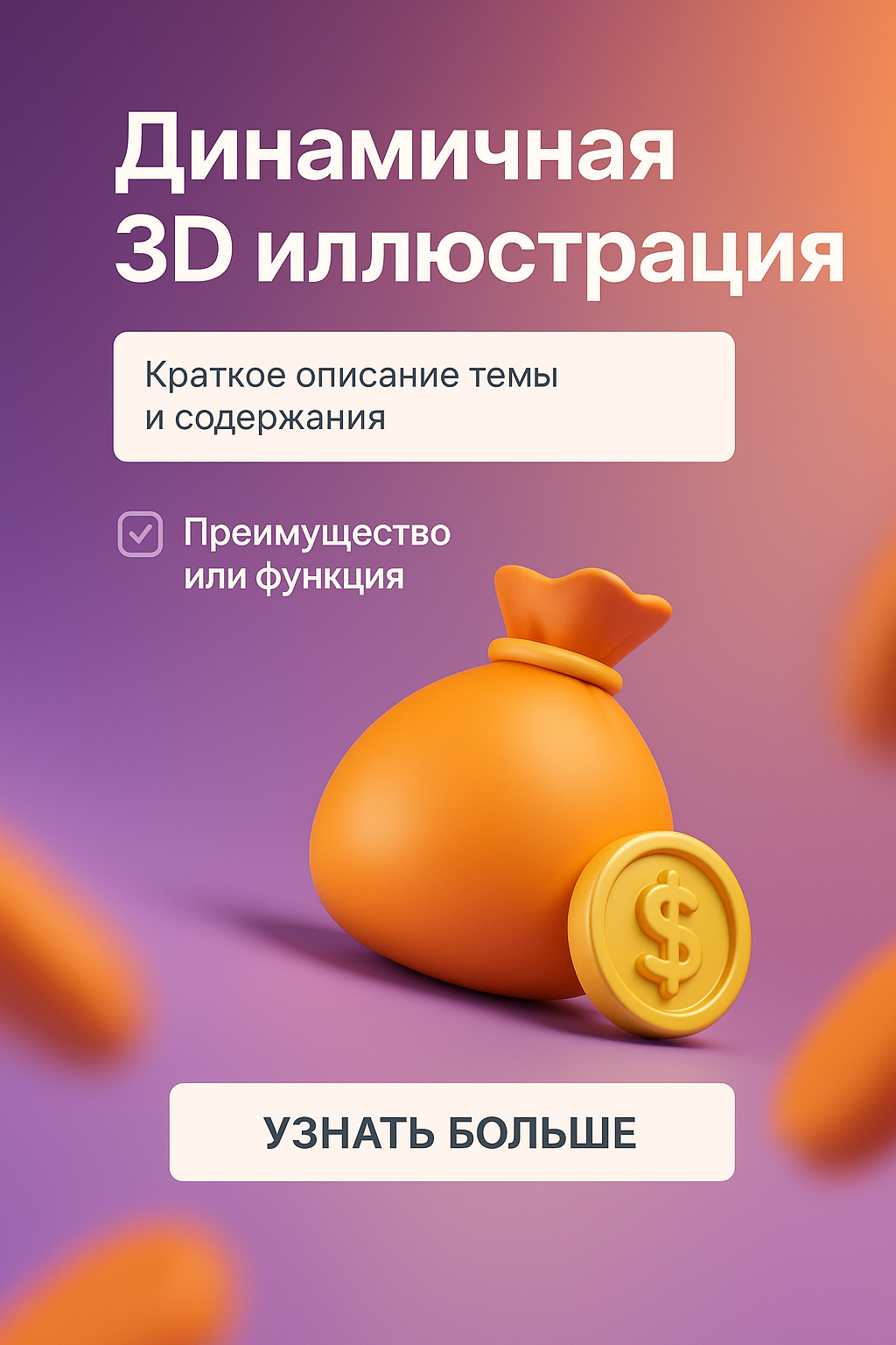 This image features a dynamic 3D illustration with a money bag and coin, ideal for financial promotional materials. The vibrant color scheme and modern design appeal to a digital audience.