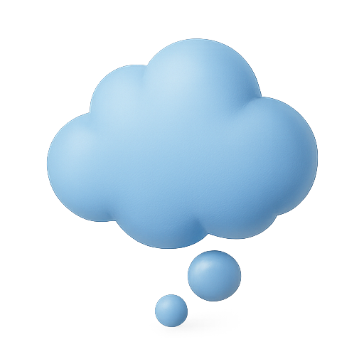 A 3D-rendered blue thought bubble graphic, ideal for creative projects, social media, and brainstorming visuals. The design is simple yet effective for conveying ideas.