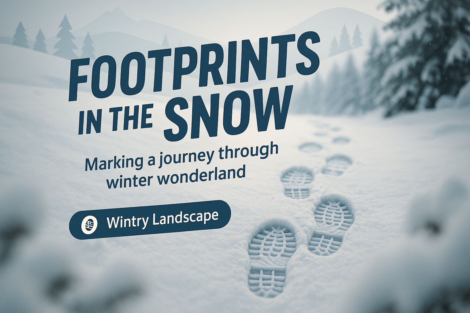 A serene winter landscape image featuring footprints in the snow, symbolizing a journey through a winter wonderland. Ideal for seasonal themes and outdoor adventure promotions.