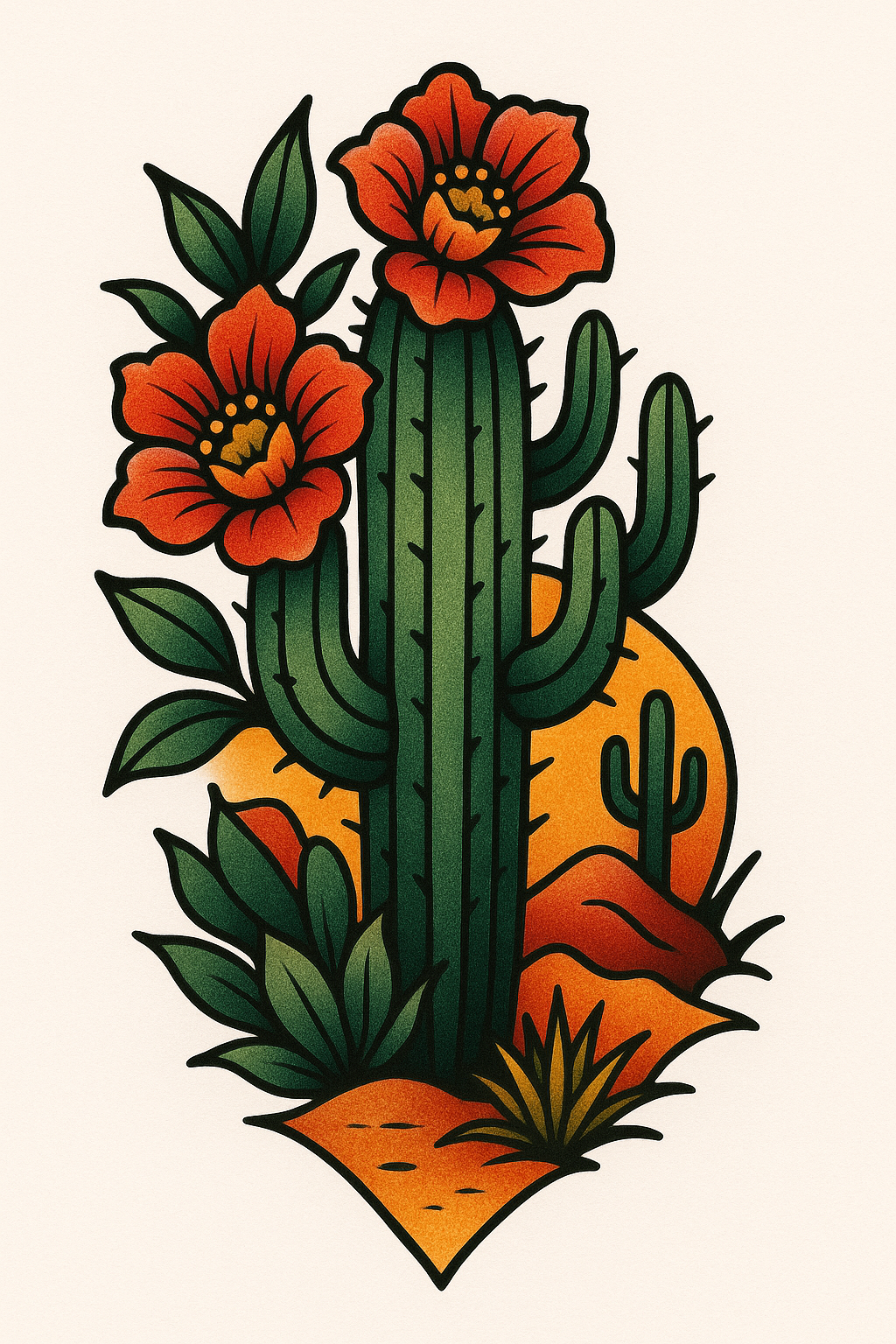 Dynamic Cactus Bloom Illustration with Vibrant Colors