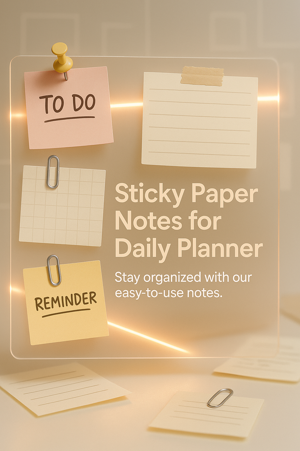 /Collection: /by davooda/Type: PNG/A visually appealing image showcasing sticky paper notes arranged for a daily planner theme, emphasizing organization and usability. Perfect for office supplies marketing.