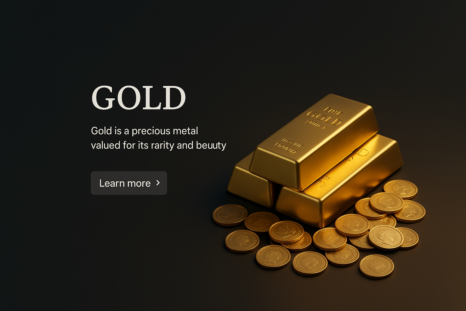 /Collection: /by davooda/Type: PNG/A visually rich 3D scene featuring gold bars and coins on a dark gradient background. The design highlights the beauty and rarity of gold, with clear text elements.
